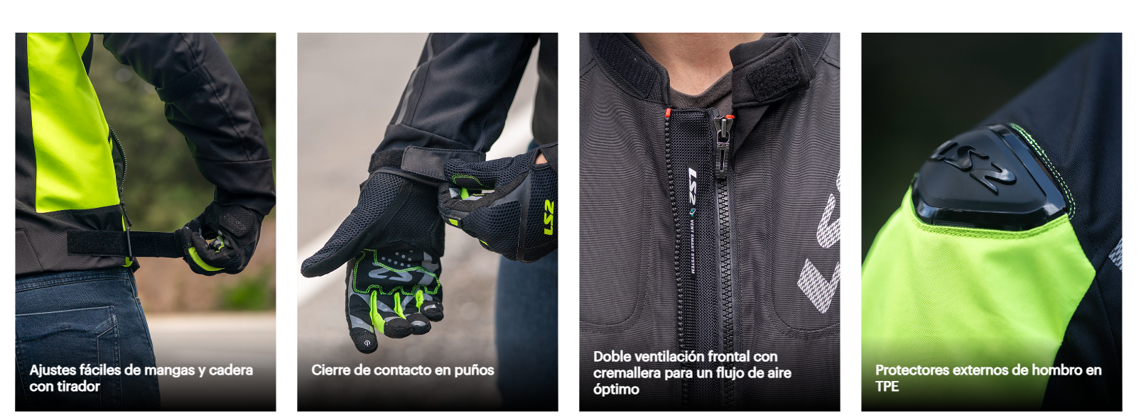 En materia de seguridad, incorpora protectores externos de hombro en TPU, además de protectores internos CE Nivel 1 en hombros y codos, con ajuste en 2 posiciones para máxima ergonomía. También es compatible con protector de pecho LS2 CE y protector de espalda LS2 851 Nivel 2.